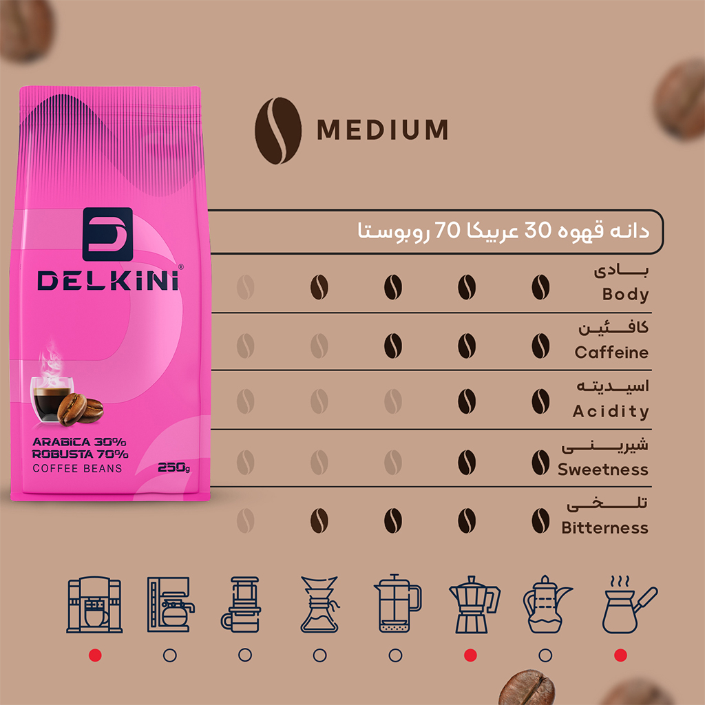 | نوع | 30 درصد عربیکا-50 درصد ربوستا |