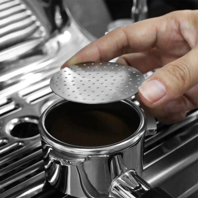 پاک اسکرین (Puck Screen) یا صفحه مشبک، یک دیسک فلزی با ضخامت کم (معمولاً ۱.۷ تا ۲ میلیمتر) است که از استیل ضدزنگ (Stainless Steel) با درجه مواد غذایی و ساختار مشبک بسیار ریز ساخته میشود. این دیسک دقیقاً روی سطح پودر قهوه تمپشده، پیش از قفل کردن پرتافیلتر در هدگروپ (Head Group)، قرار میگیرد.
